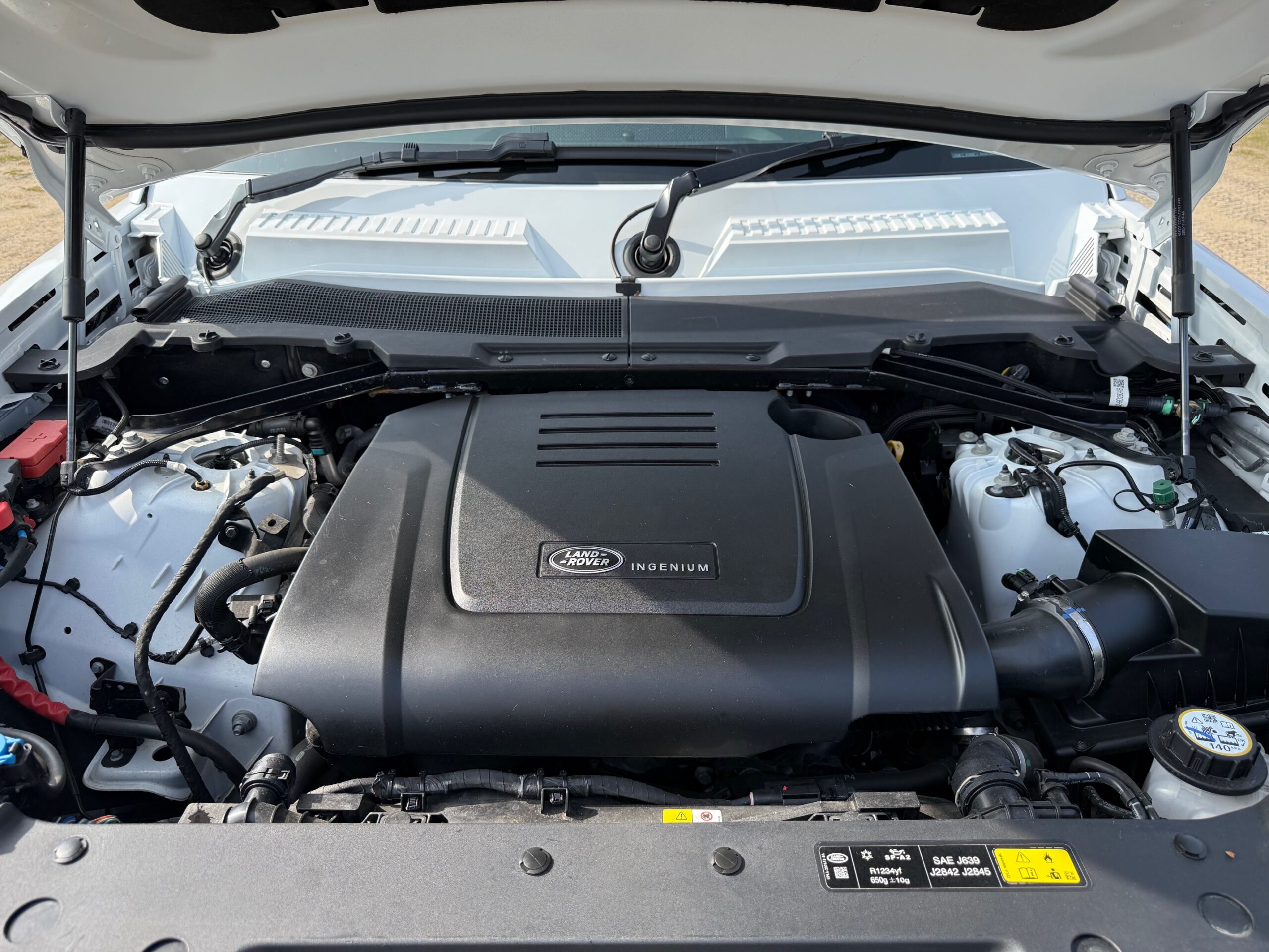 Finished in Fuji White, the exterior is complimented by the X-Dynamic styling package. Inside, luxurious Ebony Windsor hide headlines the flagship HSE specification.